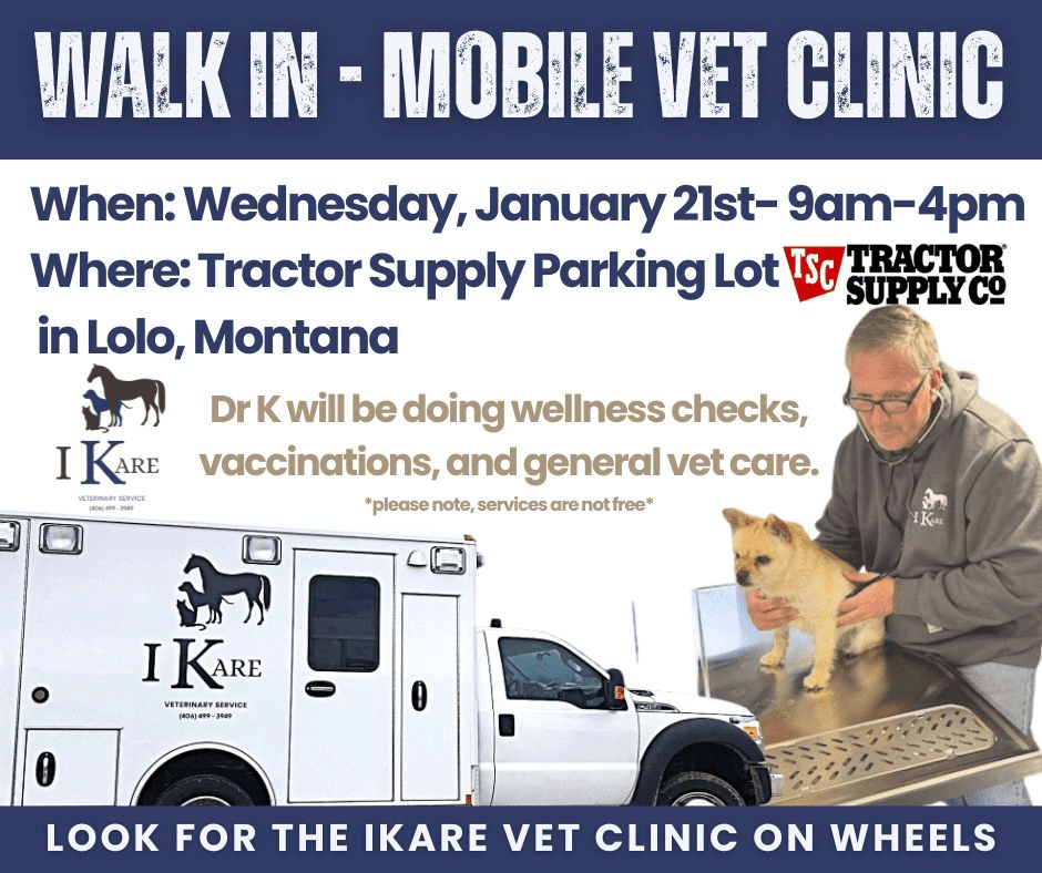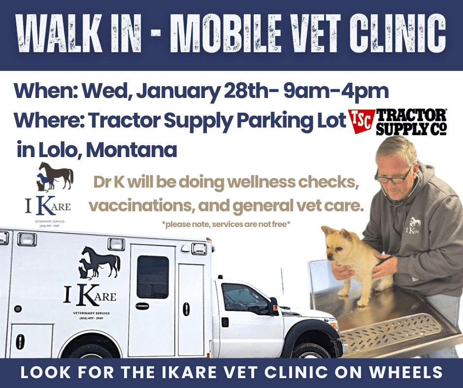 I Kare Veterinary Service is a full service mobile veterinary hospital serving the Bitterroot community. We offer surgical, dental, vaccinations, and medical care in the comfort and safety of your home. Your pet’s health is our top priority. We do this by taking the time to treat each patient as an individual because I Kare.